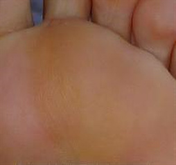 Op de eerste foto zie je 1 grote wrat op de bal van de voet, 1 kleintje op de grote teen en als je heel goed kijkt zie je een klein wratje net onder de 4e teen. Deze wratten zijn vanaf november 2006 twee maal daags behandeld met wrattenvloeistof van het merk SWP en om de 6 weken werd het eelt er omheen grondig en zorgvuldig verwijderd. Foto 2 is gedateerd op 31 januari 2007, hierop is goed te zien dat de grote wrat steeds meer naar de oppervlakte komt. Foto 3 is van 23 mei 2007, de voet is "schoon" : de wratten zijn verdwenen!